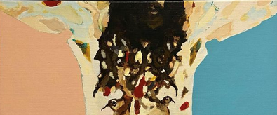 The Hare, the Squirrel, and the jump of the Bad Cat in the Threshold of Hell, 30x80cm, Acrylic on canvas. Private collection Brazil